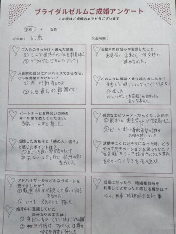 お見合いから成婚まで、約二ヶ月とスピーディな展開でしたが、9回目のデートでご成婚退会となりました。