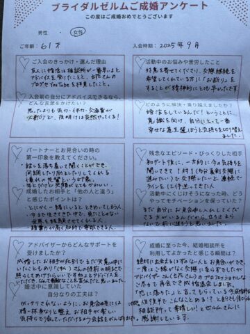 61歳女性K様のご成婚アンケート