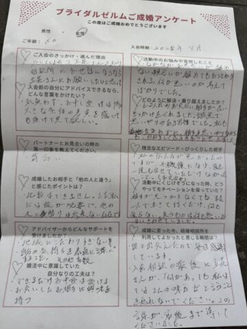 今回は、活動を振り返りながらご本人が丁寧に綴ってくださった成婚アンケートをご紹介します。