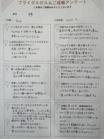 50歳女性の成婚アンケート